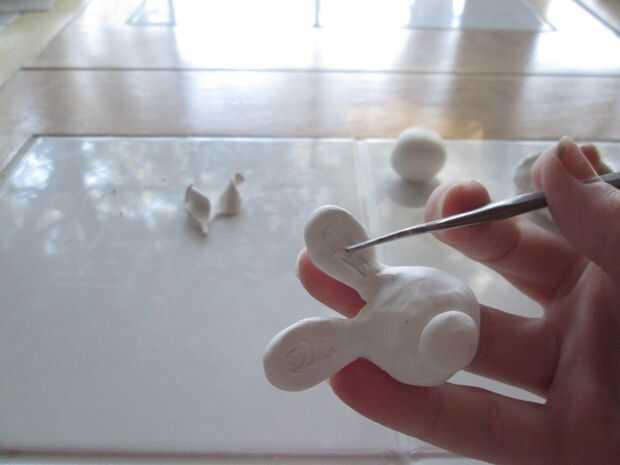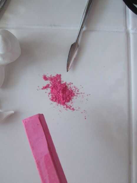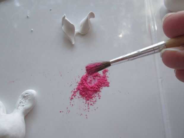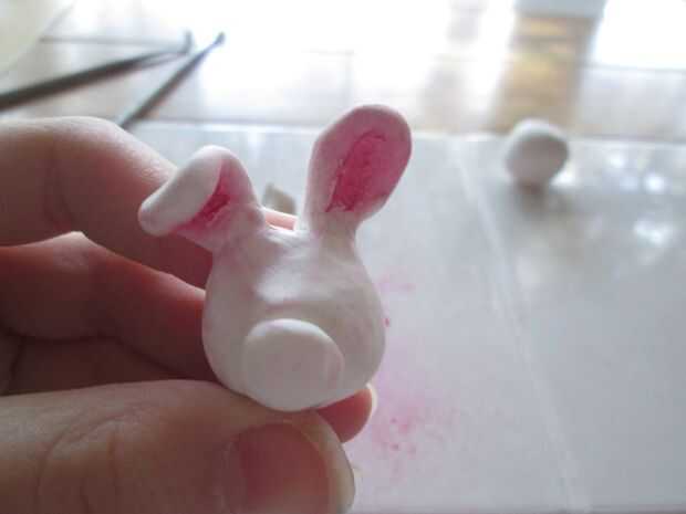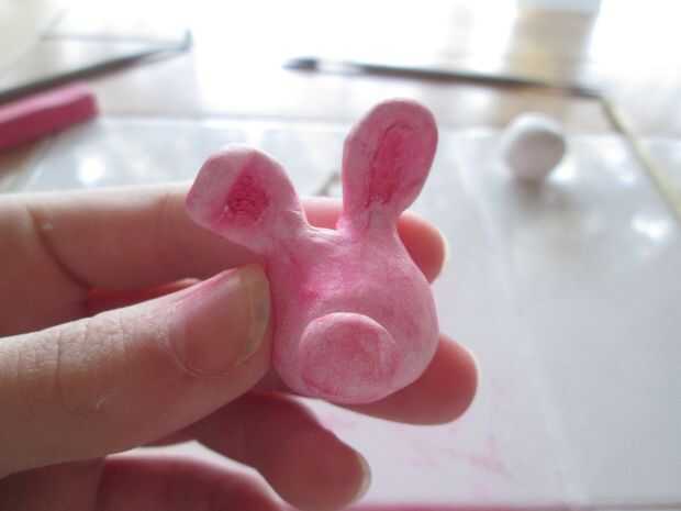 Ahora esta es la parte fácil, todo lo que quiere hacer es hacer un poco de sangría o talla dentro de las orejas de conejos para que la tiza se vean más oscura en las orejas. Ahora siguen polvo el resto de la cabeza de los conejos pero no te preocupes en conseguir cada punto porque vamos a volver y volver a polvo después.