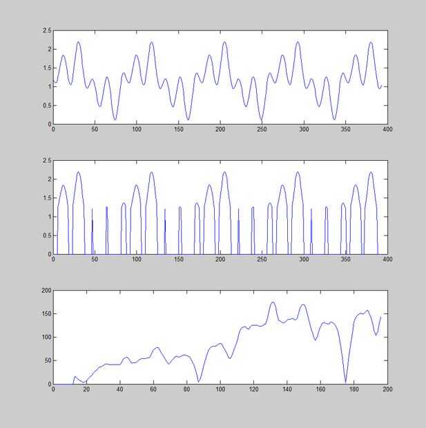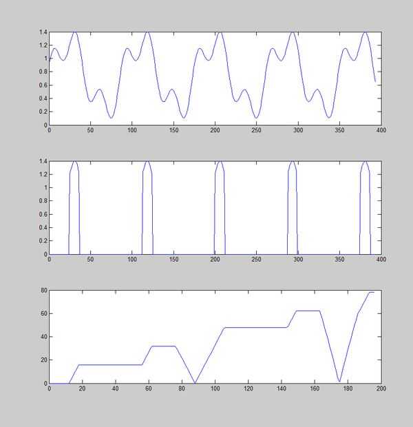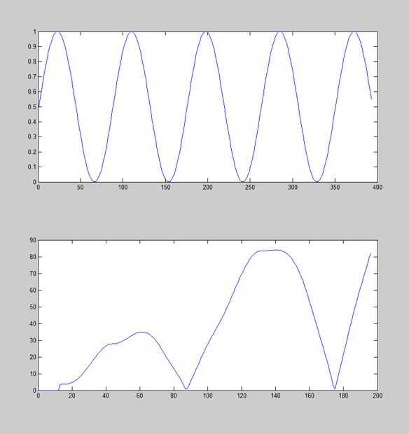 Las fotos de arriba sólo mostrar algunos de los análisis que hice en Mat lab. Lo siento por no etiquetado completamente. Pero se puede ver que hice algunas simulaciones del algoritmo antes de implementar el algoritmo. Esto al menos me mostró lo que haría el algoritmo y lo que espera que devuelve que podría conseguir.