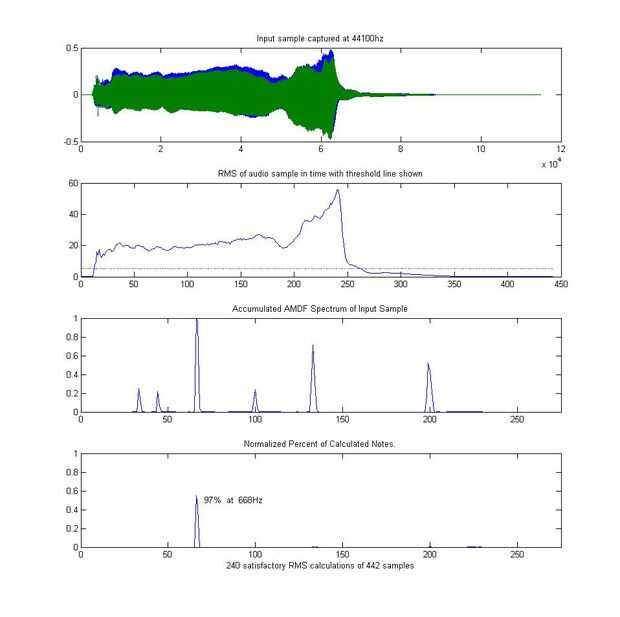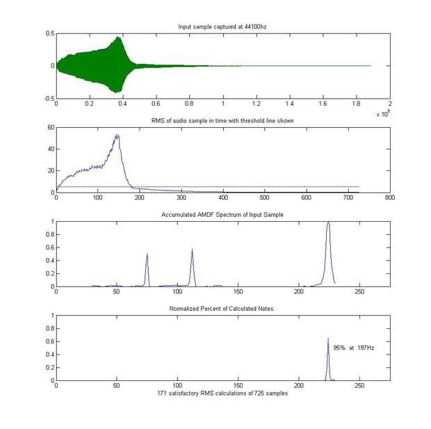En general, el algoritmo de la AMDF se utiliza junto con un HPS (espectro armónico del producto) para permitir el armónico más bajo de AMDF reemplazar los otros armónicos. Pesadamente se anota así que no puse todos los comentarios aquí.