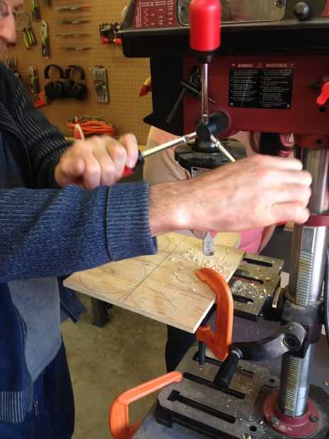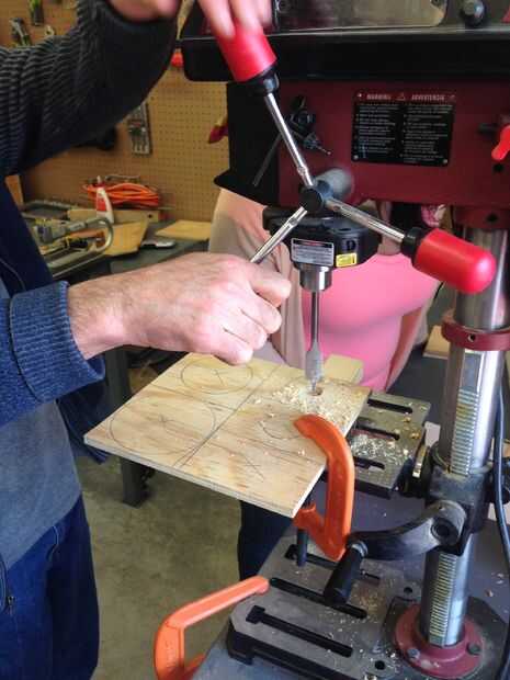Ahora tomamos cada disco lo cortado hacia fuera y taladro en el centro con lo 3/4" bits.