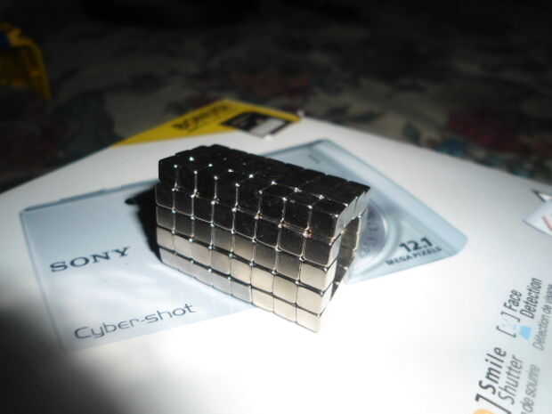 buscando imanes de tierras raras baratas? Recogí este conjunto de eBay por menos de $15 y contiene 188 de estos imanes poco (pero muy fuerte) y tres docenas de bolas de acero. Esperemos que este mete más gente en el reto magnético. Voy a publicar mi