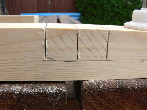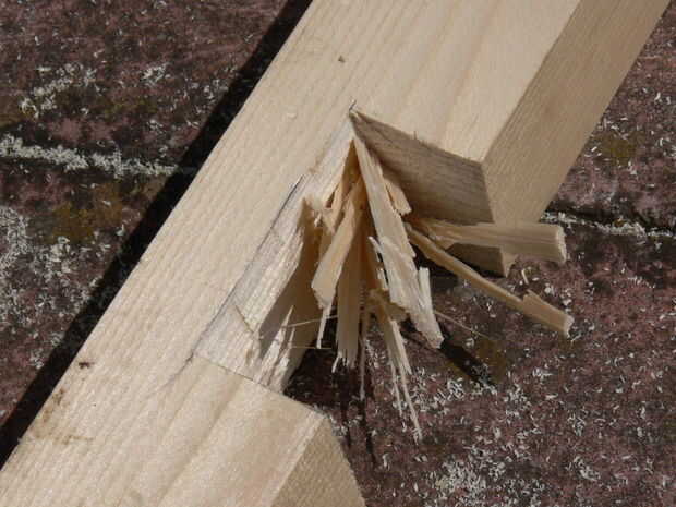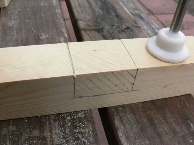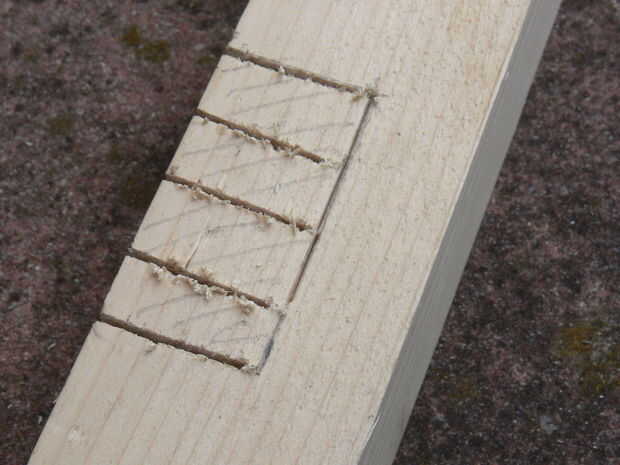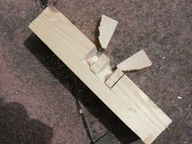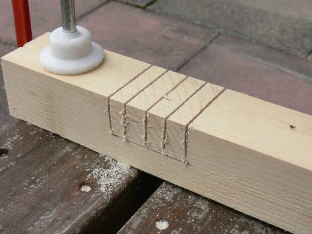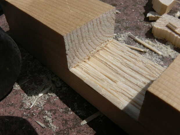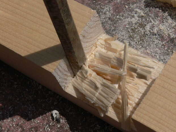 Fotos 4 y 5: ahora uso un mazo y cincel guión abajo de la línea en la parte inferior de los bloques ha cortado en él. Van a ser noqueado en un minuto, y esta línea se asegura de que no llevan madera con ellos que debe dejar intacto. Aplicar sangría a la línea en ambos lados!