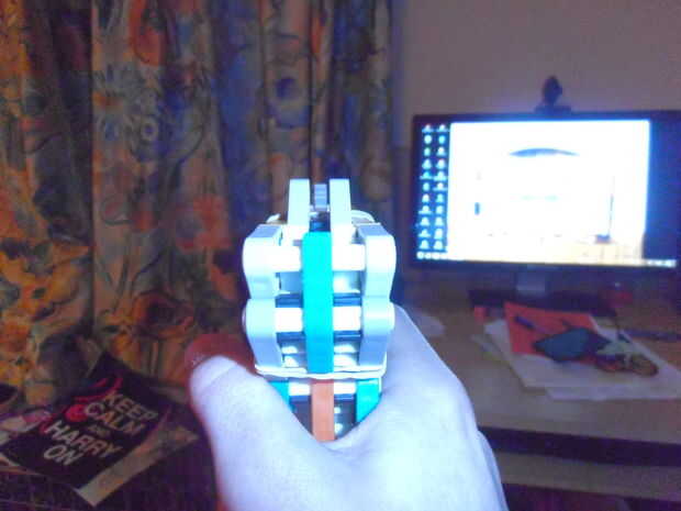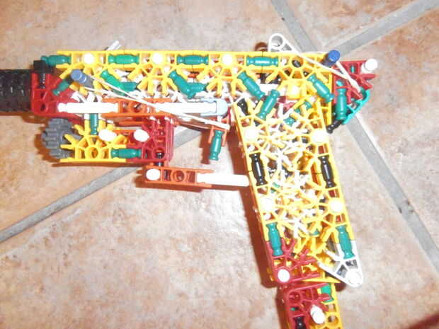 esta es un arma de KVG que usted puede hacer si no tienes muchas piezasPaso 1: Reunir las piezas para hacer el arma que vas a necesitarmango2 conectores verdes2 barras verdesbarra azul 14 conectores de púrpuraCañón3 barras rojas2 barras amarillas2 ba