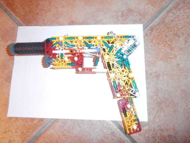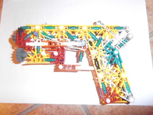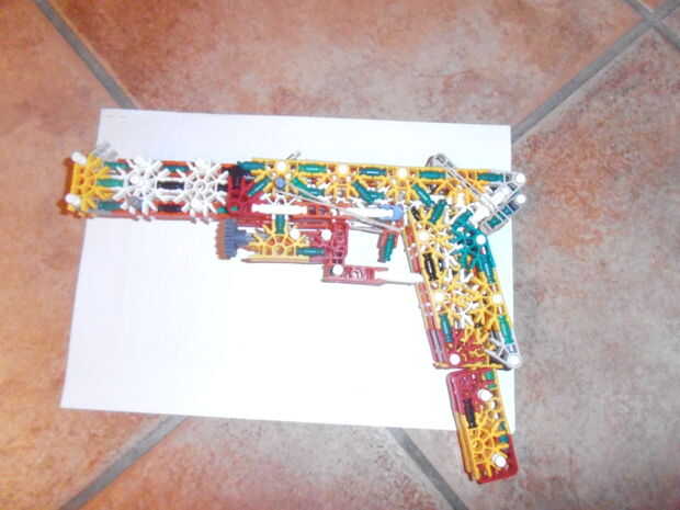 una pistola KVG pequeño que tiene una gama de moderat y utiliza 17 piezas. Dispara pequeñas verde o negro clavijas y es muy compacto.¡ Disfrute!Paso 1: reunir los materiales estas piezasPaso 2: montar la baqueta de fusil hacer esta piezaPaso 3: afile