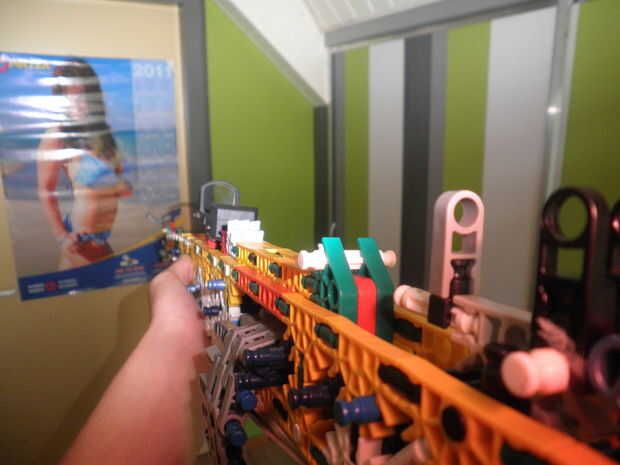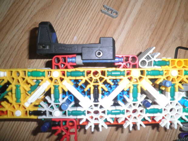 esta es un arma de KVG que usted puede hacer si no tienes muchas piezasPaso 1: Reunir las piezas para hacer el arma que vas a necesitarmango2 conectores verdes2 barras verdesbarra azul 14 conectores de púrpuraCañón3 barras rojas2 barras amarillas2 ba