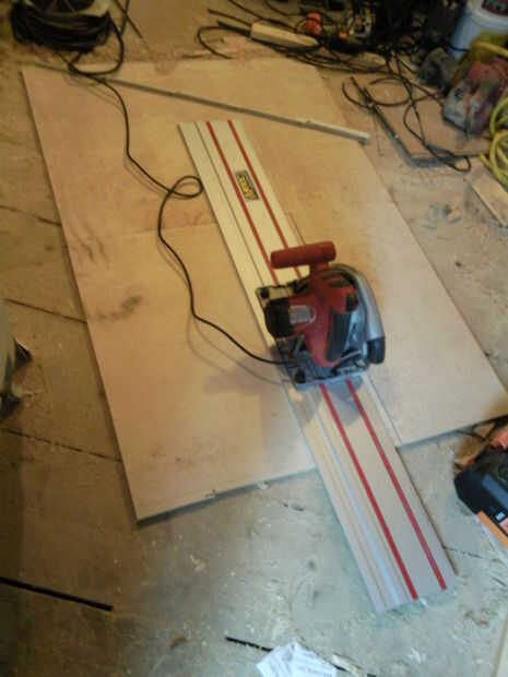 La hoja de base de madera contrachapada se cortó 6mm más pequeño que la encimera a ambos lados.