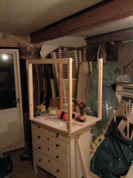 empecé colocando las esquinas del marco. Throu taladrado la madera antes de fijar el 20x25mm chapas con dos tornillos de 4x50mm i alojamientos esquina.