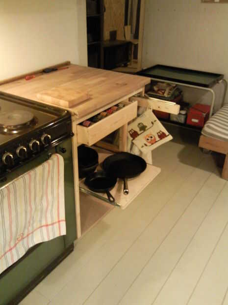 Estamos muy contentos con nuestra mesa de trabajo adicional, el towelhanger funciona bien y las especias están fácilmente disponibles. (el spicerack proviene de ikea)