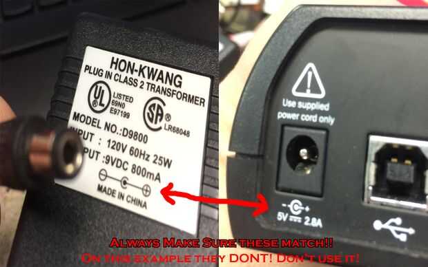 Basta con mirar la etiqueta en la espalda o el frente. Voy a tener la tensión de entrada (cuánto viene de la toma de corriente) y lo cuánto transforma a. (lo que sale) Además habrá un diagrama que muestra si es un "centro"positiva o Conecte un "centro negativo". Es muy importante saber qué tensión y polaridad (la cosa de centro) un transformador es antes de enchufarlo en un dispositivo. para el dispositivo en cuestión también generalmente tendrá derecho diagrama junto a la entrada de enchufe de energía que muestra la polaridad y el voltaje requerido.