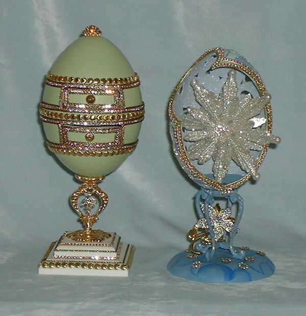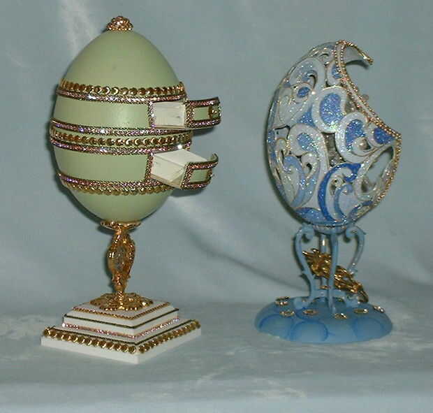 Uno con dos cajones que abrirán y cerrar y allí son un pequeño cofre en la parte más superior del huevo. El huevo azul simplemente está cubierto en "C" volutas que dibujé en el para que le toque todos en algún momento. Áreas que tocan no se cortan.