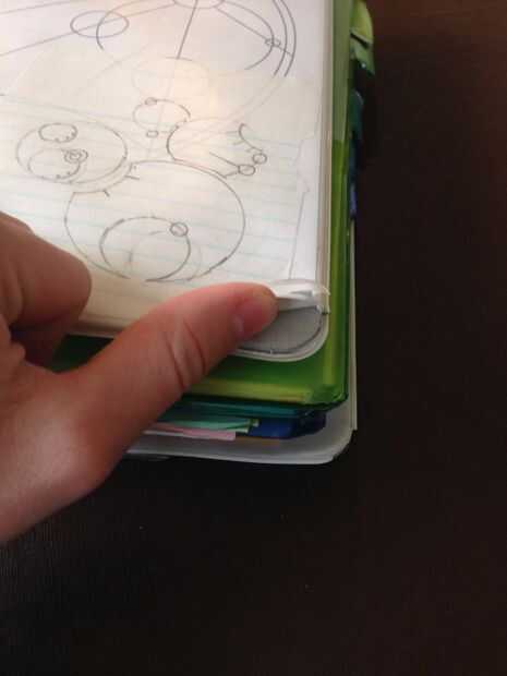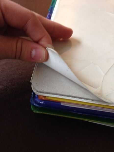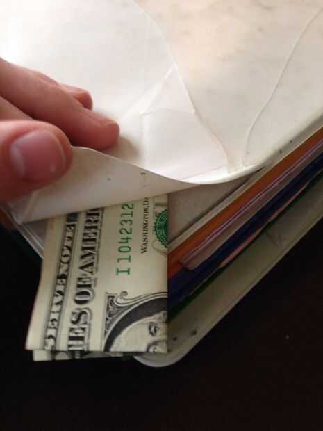 Esto funciona mejor si tu carpeta es antigua y cayendo a pedazos, porque entonces se ve más normal. Pero casi todas carpetas cartulina adentro cubierto en un plástico exterior. Las esquinas generalmente blip hasta revelar la cartulina interior. Por lo general, estas cintas, pero hoy me alegré que no hubiera llegado a hacerlo todavía. Esto permitió un gran escondite.