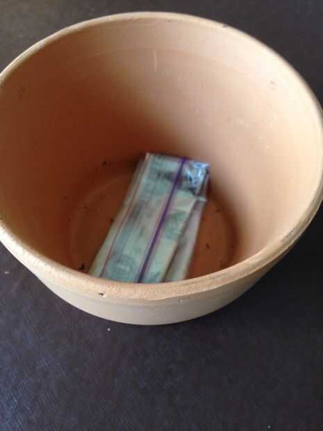 Este escondite lleva más trabajo y no es fácilmente accesible, pero si quieres esconder bien, esto lo haré. Tomar todo lo que quieras ocultar y colocar en una bolsa de plástico. Doble la bolsa más pequeña. Poner y aproximadamente y de la suciedad en la parte inferior de la maceta, coloque la bolsa doblada en la parte superior y terminar llenando el recipiente con suciedad. Colocar una planta de plástico en la tierra. Si utiliza una planta real, se mojará, y la bolsa posiblemente puede obstaculizar el progreso del crecimiento de la planta, que suspicacia y no una pequeña cantidad de ira del comprador de la planta. Normalmente mi madre. Colocar esto en una ventana en algún lugar y asegúrese de que no se riega.