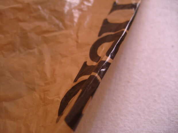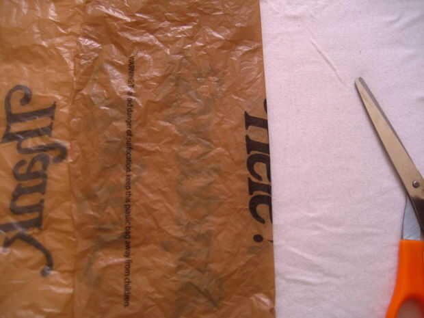 También, preste atención al patrón/texto por parte de la bolsa que están cortando para crear interesantes diseños de flores.