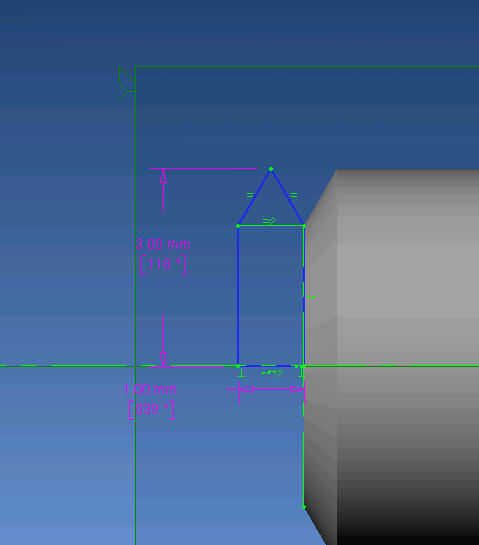 Las dos líneas creando el punto y la línea de referencia forman un triángulo equilátero.