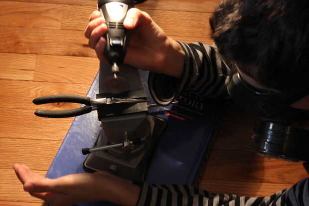 Comience el corte con el Dremel desde la espalda hasta la punta de los alicates.