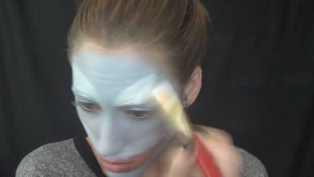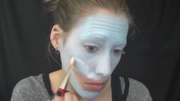 Entonces tomé un cepillo del ventilador con muy diluida de pintura blanca y droga que más que blanca manchas para que se vea como piel.