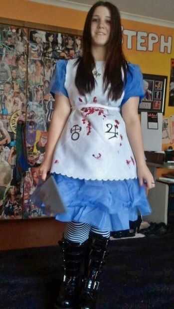 Comic-Con, finalmente había llegado a Australia y me encanta que se visten en trajes, así que pensé por qué no hacer un disfraz de algo que me gusta realmente como un juego de video. He creado un traje de Alicia basado en videojuego de Alicia de McGee americano donde hay un estilo más espeluznante a Alicia. Aunque Alice de American McGee parece un poco diferente, puse mi propio estilo poco a lo que yo pensaba salió igual de bien. Una máquina de coser era muy útil para este traje.