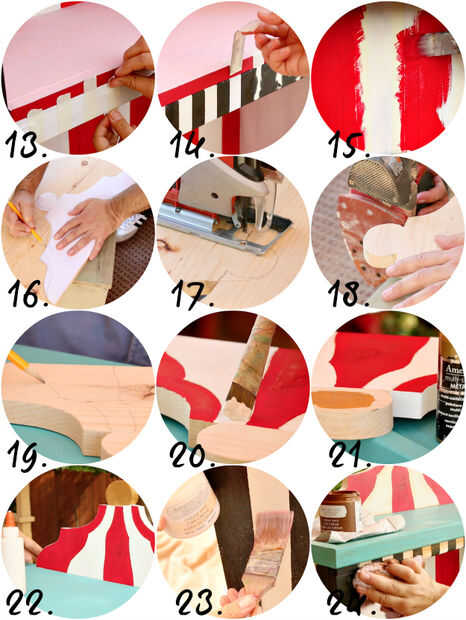 16. 17. & 18. Rastro, corte y arena un frontón de un pedazo de pino madera de 1 "x 12" aquí es un patrón para el frontón que usé
