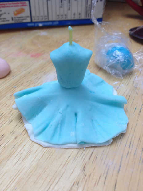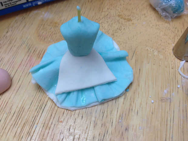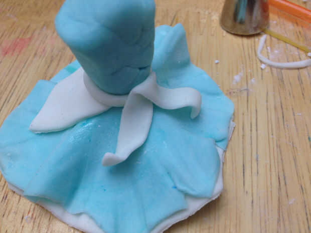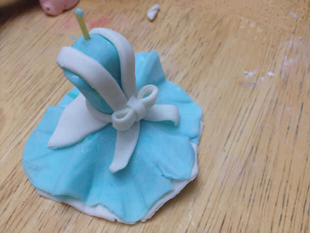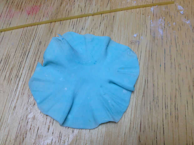 Para hacer la falda con volados algo, sólo tiene que utilizar un palillo, rodando en los bordes del fondant, mover hacia adelante y hacia atrás