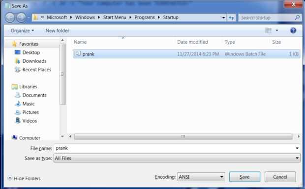 Tenemos que hacer que esto surgirá cuando el equipo se inicia, por lo que si queremos que lo haga para un sólo usuario, guardaremos nuestro código como un archivo .bat en el directorio siguiente: