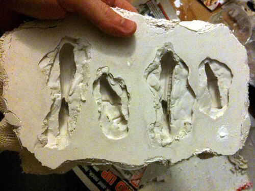 Línea de sus segmentos de brazo y les cubra con yeso, al igual que con el resto de la escultura. Como antes, esperar a que el yeso fijar completamente antes de raspar a la plastilina.