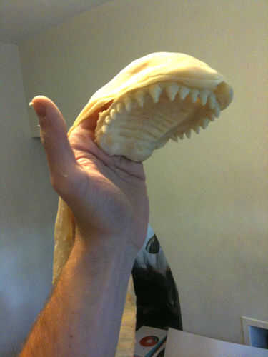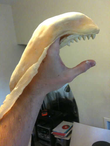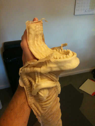 Empezar por supergluing los segmentos de boca en los segmentos del cuerpo. Pegamento disuelve y re-palillos látex en cuestión de segundos, así que aplique con cuidado. Probar los nuevo Alien skin mano prendas de vestir para asegurarse de que encajan.