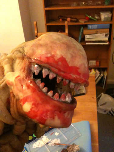 Látex tiende a secar irregular en colores que van del blanco al bastante anaranjado-rojo intenso, que traje un chestburster Alien, muy bien. Encontré que sólo pintar los dientes blanco y añadiendo unos toques de sangre dieron un buen efecto.