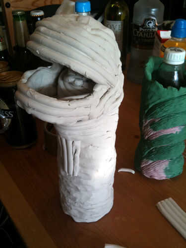 Se trata de un látex chestburster alienígena que fue esculpida por con plastilina (los dientes son palillos) luego moldeada en yeso. El molde entonces se llena hasta el borde con el látex, a alrededor de 3 horas y luego el látex se vierte hacia fuera