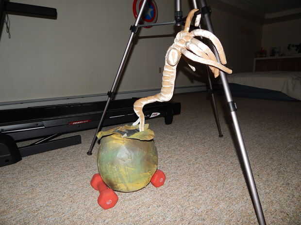 Hola a todos, aquí hay unas fotos de un guerrero alienígena y huevos de la película 'Aliens' que mi novia y yo para nuestra fiesta de Halloweenel extranjero está construido de alambre de pollo, luego papel mached luego detalle añadido mediante pegame