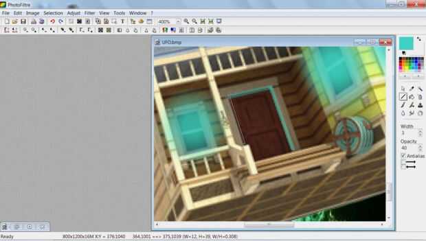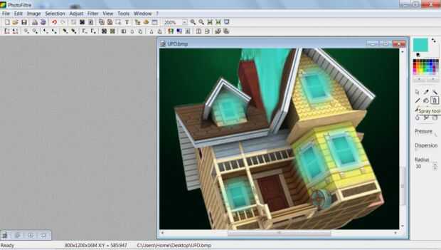 Elegir la herramienta aerosol y un color que empareja del plasma de la paleta de colores. Ajuste la presión a la derecha, la dispersión a la izquierda y el radio a 30 o menos. Rocíe las ventanas con arranques cortos hasta que se alcance el brillo deseado. También quería un resplandor de las grietas alrededor de la puerta. Utilicé el mismo color y la herramienta de línea de ajuste a la opacidad y una anchura de 3 a 40 trazar alrededor de la puerta.