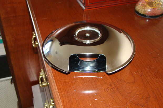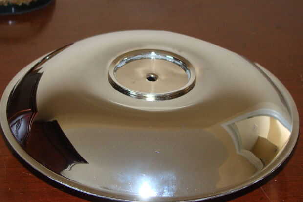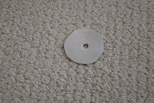 Tomar uno de los recipientes de la gama y corte un pedazo hacia fuera en forma circular un poco más grande que el agujero que se encuentra en la parte inferior de la bandeja utilizando las tijeras.  Aplanar hacia fuera y perfore un pequeño agujero en el centro (o hacer un agujero con un martillo y clavo).  Utilice el archivo o amoladora para quitar cualquier borde filoso.  Esta pieza de epoxy sobre el agujero en otro de los recipientes.  Cuando esté seco epoxy este pan a la tercer bandeja en forma de UFO.  El lado con el agujero cubierto la parte superior del OVNI y el lado con el agujero abierto la parte inferior (el orificio que ha perforado permitirá un poco de luz a través de iluminar su alien).  También debe tener una abertura en la parte de atrás donde pasará la luz.