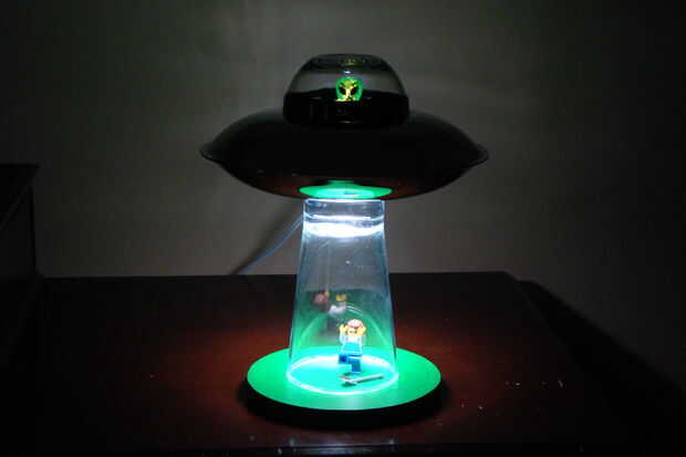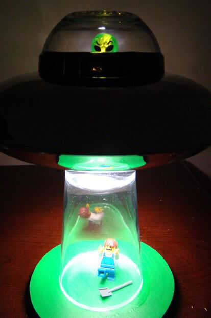 madre si le gusta artículos de novedad, esto es algo que usted puede hacer para ella que no se puede comprar en la tienda - su propio Alien Abuduction Nite Lite con un vuelo extraíble (con hilo de ganchillo) nave espacial!Y Shaun las ovejas es más gr