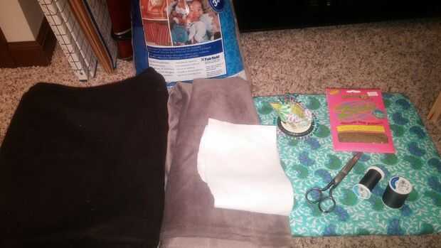 2. 1/4 yd negro paño grueso y suave, de algodón o de punto esto puede ser cualquier desecho negro tienes yo creo que es durable para el arañar y morder por eso elijo el paño grueso y suave paño grueso y suave. Retal de tela gris encontré terciopelo gris en el depósito de remanente y pagó $2,50 por manera que más terciopelo que necesites, blanco sentía por las garras y los dientes otra vez desechos son sus amigos, no necesita mucho.
