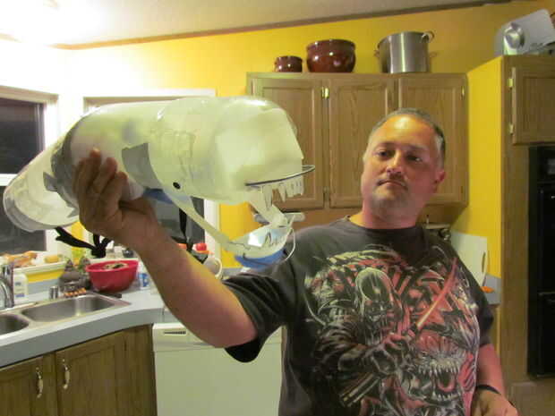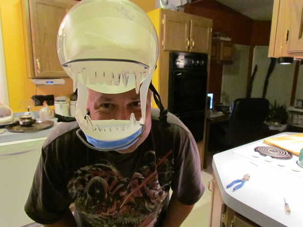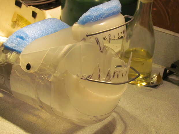 Quijada el extranjero necesita un poco más de profundidad, así que me volví a la tienda de dólar fideos de la diversión. Espuma de célula maravillosa, barata, cerrado, funcionó de maravillas. Me di cuenta de que necesitábamos unos labios demasiado así que explotó las perchas. Sólo calentar un destornillador y fundir un agujero de suspensión en. Un poco más espuma para rellenar el cuello y estamos en nuestro camino. está empezando a ver bastante bien!