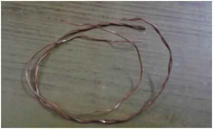 Tomar un alambre con gruesos hilos de cobre. El cable tuve, incluye tres líneas, de los cuales usé dos por lo que lleva a cabo la forma fácilmente. Trence los hilos.
