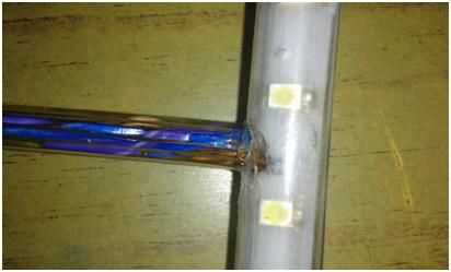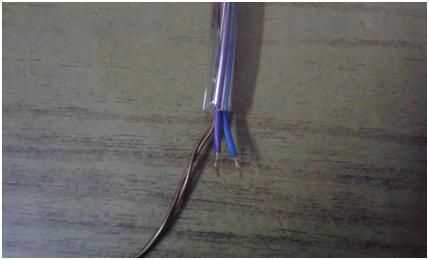 Pasar los cables de LED junto con los gruesos hilos de cobre dentro del tubo flexible
