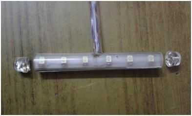 Para cubrir los extremos abiertos del tubo de luz que vamos a utilizar 10 mm LEDs (trabajar o no trabajar, no importa. Cortar las puntas y el lado plano del LED para que sea suave de archivos.
