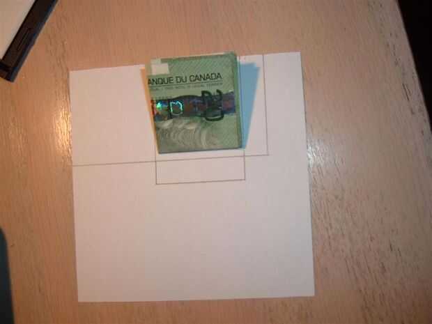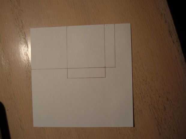una vez que su factura de doblado y en comparación con su tarjeta, tenemos que la envolvente para sujetar firmemente debajo de la tarjeta. para este paso, dibujar la plantilla adjunta en una hoja de papel, cambiando las longitudes según la cuenta doblada. en mi caso, los rectángulos de mi plantilla fueron 3,9 cm x 4,3 cm.