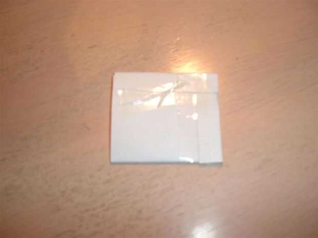 Doble el papel en un rectángulo. doblar los dos rectángulos grandes juntos, luego usar los dos más pequeños para cerrar los bordes. Si tiene una envolvente, abierta en un lado. ambos pliegues deben ser en el mismo lado de la envolvente, esto reducirá las posibilidades de que la cinta caiga en tu computadora (verá en el siguiente paso).