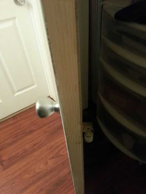 ¿Mango suelto? ¿Tiene un doble o puerta huecas con una manija de puerta estática suelta?Aquí le damos una solución: montar un pequeño trozo de madera dentro de la base hueco para que la placa de montaje de la palanca puede ser sujetada a él en lugar
