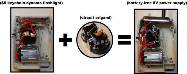 Añadiendo unos pocos componentes electrónicos a una linterna de Dinamo ampliamente disponible, puede alimentar pequeños dispositivos por períodos cortos sin utilizar enchufes o baterías. El dínamo mejorado es ideal para la mesa de trabajo o mostrando nuevos proyectos prácticamente en cualquier lugar.