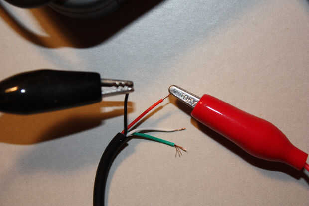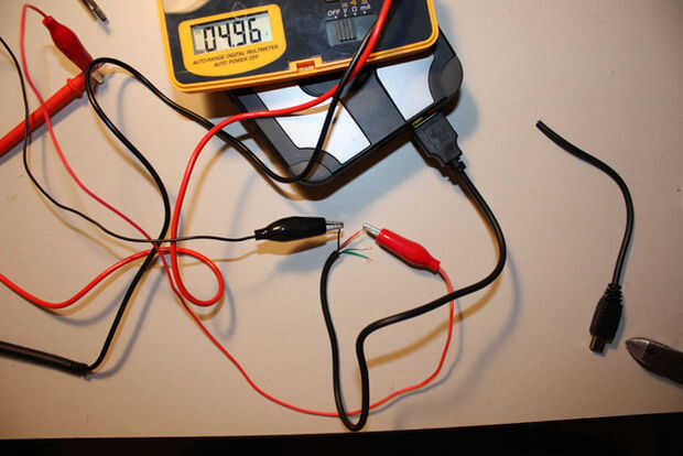 Corte el cable cerca de 5 pulgadas desde la punta del extremo mini-B. Tira el extremo USB-A y los 4 cables dentro. Determinar que los cables son el enchufe positivo y tierra, el USB-A en un enchufe USB con alimentación. Prueba combinaciones de cables con un voltímetro - si hay rojo y negro cables, probablemente proporcionan energía positiva y la tierra, respectivamente.