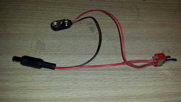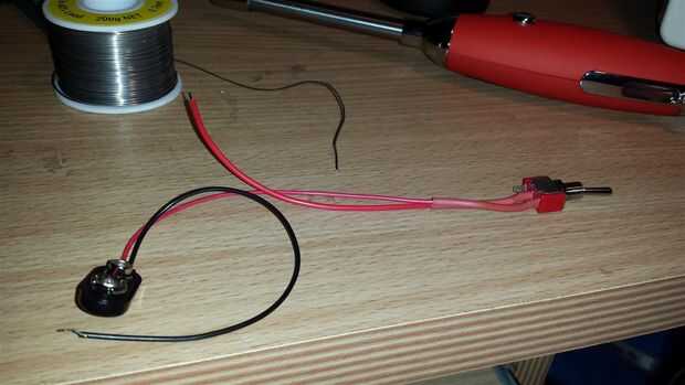 Desenroscar la carcasa de la clavija y luego soldar los 2 cables en. El cable rojo se fue a la patilla central, con el cable negro está soldado a la patilla exterior. A continuación atornillar la carcasa y enchufada una batería para asegurarse de que todo lo trabajado.