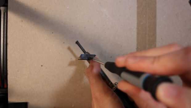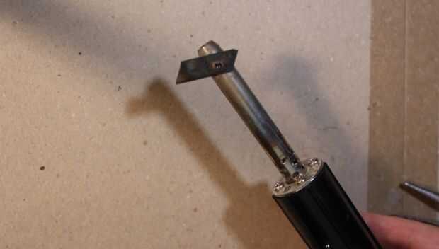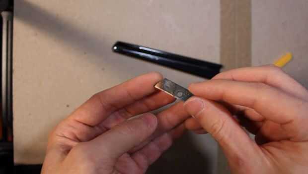 Tome un pedazo sobrante de la hoja de un cuchillo retráctil y montarlo en un soldador colocando la pieza entre el tornillo de la plancha.