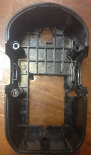Me decidí a montar mi interruptor de la parte inferior trasera de la caja. Pensé en meter el lado, pero estaba seguro de que podría debilitar el cuerpo, ya que iba a tener que quitar otro tornillo poste. La espalda parecía ser una apuesta más segura. El agujero no tiene que ser perfecto porque el interruptor tiene su propio casquete que cubre muy bien las cosas.