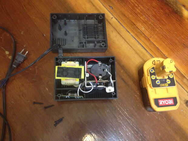 Los principales componentes del cargador son las siguientes. El transformador, esto es lo grande pesado ladrillo. Los cables se sueldan a él. A continuación, salir el transformador es un portafusibles y un fusible. Esta es una característica de seguridad extra, mantener unida. Luego está el disipador de calor y circuito. La mayoría de estas piezas simplemente levante derecho hacia fuera, la excepción de los cables de corriente que se recortan en el puerto de carga. Con un poco de fuerza, estos Deslice bien.