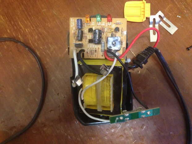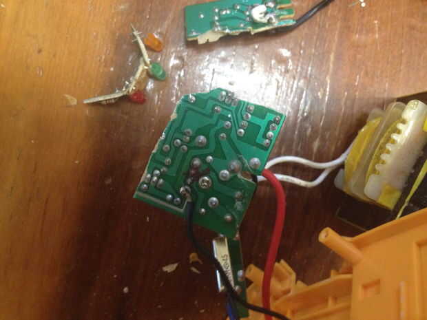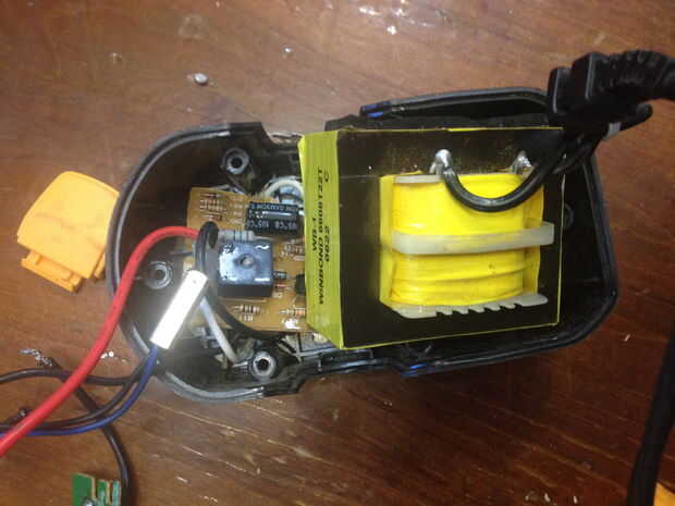 Puesto que la mayor parte de la Junta no sirvió ningún propósito ahora, una parte de él podría ser quitada. Agarré mi metal tijeras (tijeras) y cortar la parte superior y lateral de la Junta. Prueba otra vez y todavía pude un taladro de la configuración de energía. No es bonito, pero trabajó y me ahorró mucho trabajo tener que reconstruir el circuito con puentes.