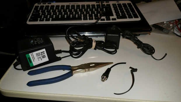 Así que pasé por todo lo que se tuvo y no pudo encontrar a uno que tenía un conector de barril de tamaño correcto. Pero yo sabía que podía desenterrar uno en casa. Efectivamente en casa he encontrado uno con el gato de barril de tamaño adecuado de un adaptador de 9v.