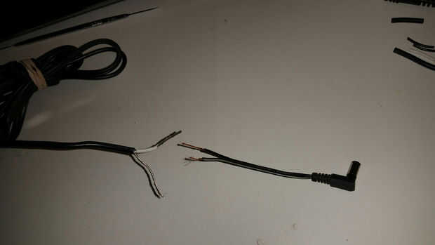 Con un snip snip poco y algunos algunos de plástico tenía pronto el inicio de una toma de poder de trasplante. Tuve suerte de que la polaridad de estos dos era exactamente iguales. Incluso los dos habían tenido un cable blanco, que hizo un trabajo de soldadura para arriba.