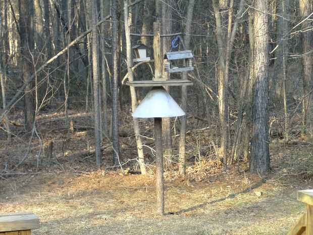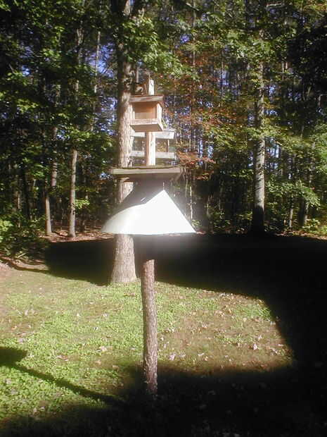 Me gusta poner semillas de aves en el invierno así que hice esta ave estación para alimentar a las aves con la alimentación. Las ardillas creo que estoy poniendo el alimento hacia fuera para ellos para que persecución a las aves. Mi broma corriente es que no sé por qué lo llaman pájaro alimentación, todo parece comer las cosas! Debido a la forma en la ley de ardillas que tuve que hacer un cono en forma de deflector de un piel de calentador de agua caliente difunto y ponerlo en el poste que soporta mi estación de alimentación.